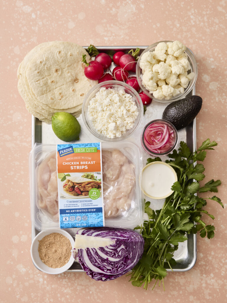 Let everyone load up their tacos with their favorite toppings for an easy, fun, and flavor-packed way to celebrate Taco Tuesday — or any day! Bake your chicken and veggies in just 15 minutes, thanks to Perdue® Fresh Cuts Chicken Breast Strips that are already pre-cut for you.