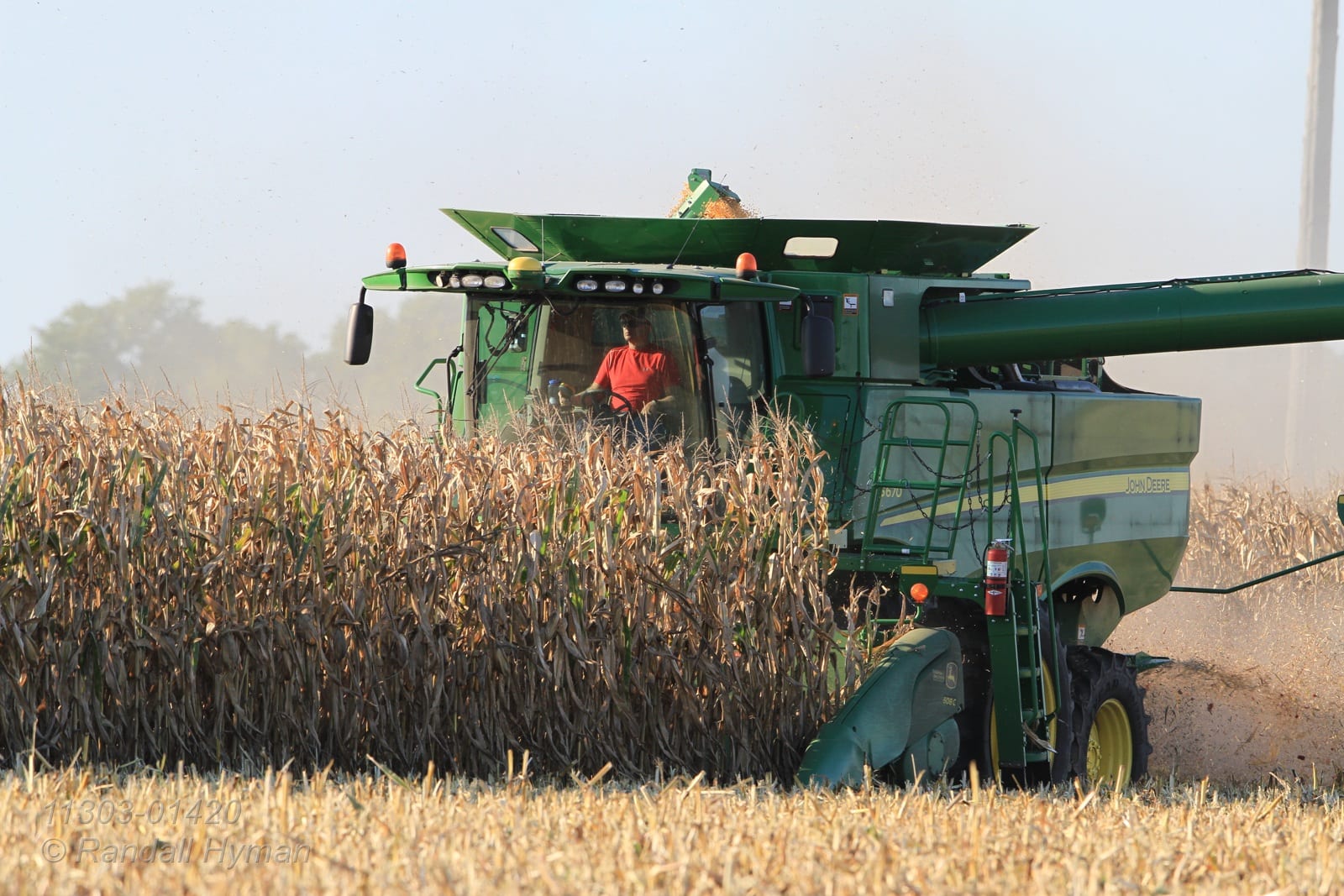 - Dick Gillen drives combine during corn harvest; Monmouth, Illinois.