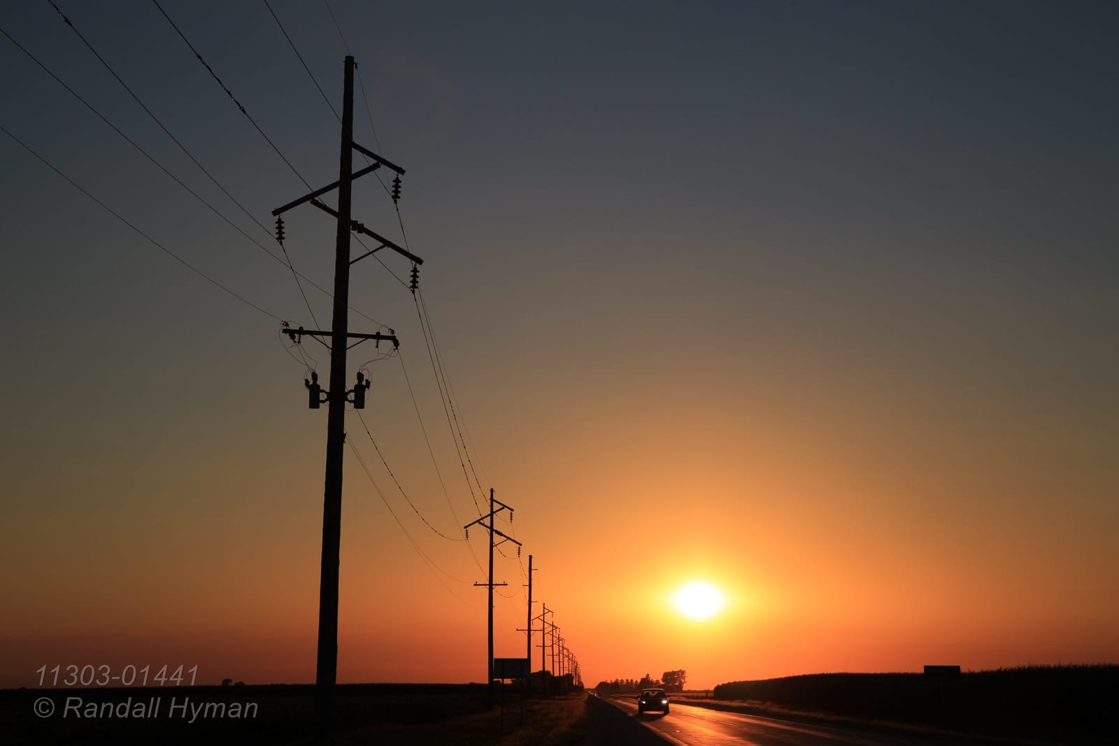 - Sunset on Highway 164 at Highway 135 intersection near Monmouth, Illinois.