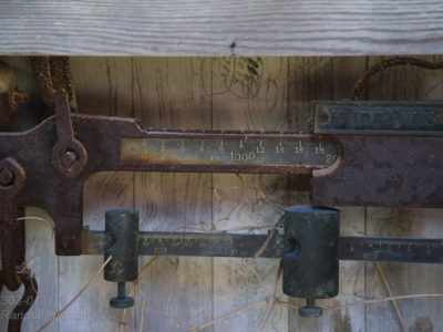 - Vintage truck scale in old barn on the Corzatt farm near Berwick, Illinois.