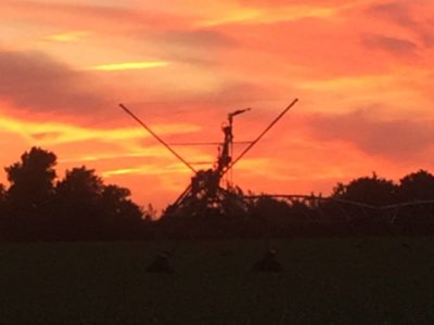 - August 1, 2017 – We use a program to track rainfall and how much irrigated water we’ve applied to make sure our soybeans are getting the ideal amount of water. Since we know how many days it takes to get through a field, we can water to the crop right when it needs it.